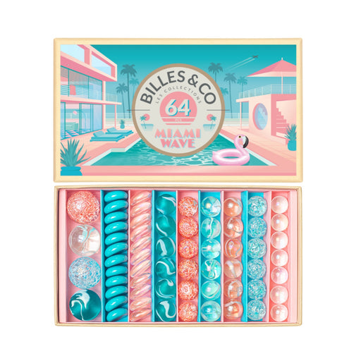 Box of 64 marbles Dream of vacation with this assortment of the most beautiful villas in Miami! Dive into a pink and blue design jewel with your...