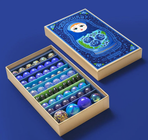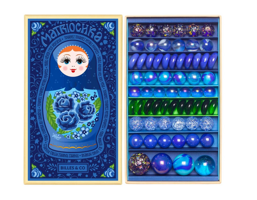 This assortment of glass marbles features vibrant azure hues - inspired by the allure of the Matryoshka or Russian nesting dolls. Every marble is u...