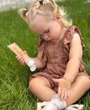 Our pediatric dermatologist recommended, baby safe sunscreen is water-resistant for up to 80 minutes. Enriched with leading safe ingredients, our non-nano clear Zinc Oxide, with added cooling Aloe and conditioning Vitamin E, provides broad spectrum protection against harmful UVA and UVB rays, leaving little to no white cast.