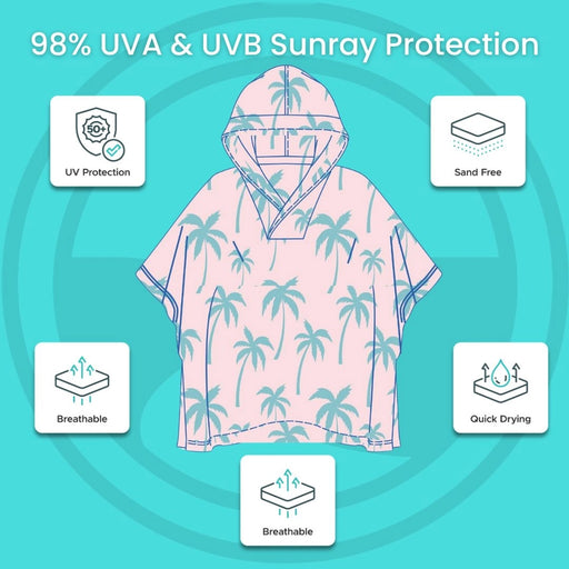 View full detailsKids Hooded Upf50+ Poncho (Coral Palm Trees)