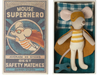 A classic Maileg item. This mouse is ready for hours of play and sleeps tight in a little matchbox. The clothes and bed linen come in unique prints and beautiful colors. Two face masks included - one for flying and one for sleeping.