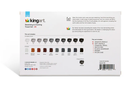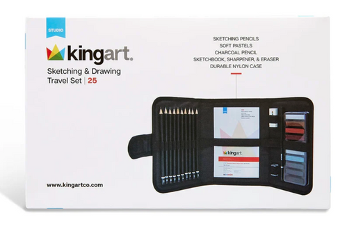 KINGART® STUDIO Sketching & Drawing Travel Set | 25 Piece Sketching Pencils Chalk Pastels Charcoal Pencil Sketchbook, Sharpener & Eraser D...