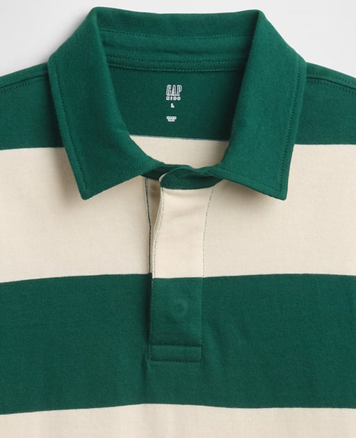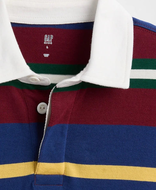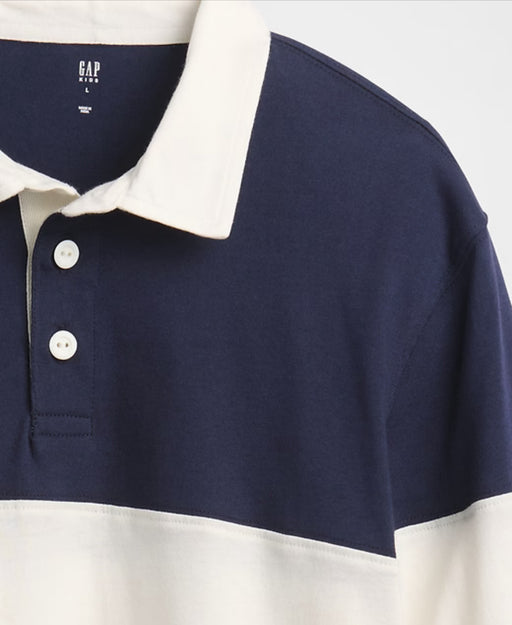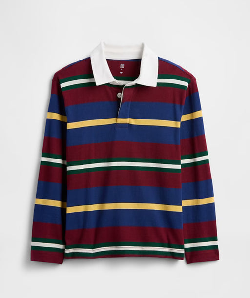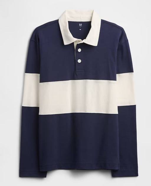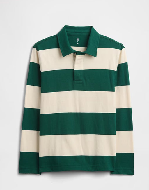 100% Cotton Soft jersey knit. Dropped shoulder, long sleeves with banded cuffs. Spread collar, henley button front. Allover stripes.