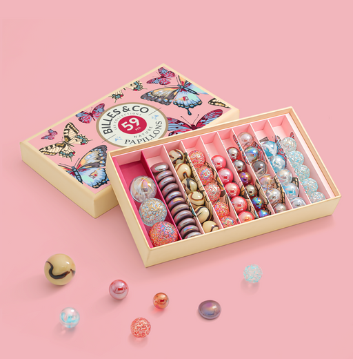 Large: Box of 59 marbles, peebles and shooters For this season’s most colorful assortment, we’ve decided to offer you a magical experience. When yo...