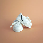 Please note: the lace holes in the sneakers are very delicate and the laces come pretied to ensure the laces do not tear through the hole. The sneakers should slip on and off your dolls feet without needing to be undone.