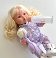 Bed time just got a whole lot cuter with the Tiny Tummies Sleepy Time Pack. It includes Doll Pajamas in our best selling Lilac Daisy print and Fluffy White Slippers for a cozy bed time. The Magic Milk Bottle adds whimsy to their imaginative adventures. Plus, a sweet little rattle for some play before bed time.