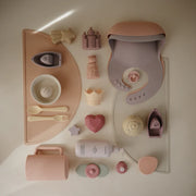 Make a splash at bathtime with the princess bath play set that includes a crown, castle, heart gem and bear princess. Made from 100% food grade silicone, the soft material is easy for little hands to hold while wet or dry. Its inventive design allows each toy to open into two separate pieces for thorough cleaning and fast drying. This feature allows the toys to remain mold-free with its easy-to-clean pieces that are dishwasher safe. After each use, we recommend opening the pieces to rinse out and air dry before storing.