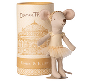 This ballet dancer mouse is the star of the stage! Dressed in a delicate tutu and golden tiara, Big Sister is ready for her grand performance in Romeo and Juliet. She arrives in a beautifully decorated tube and comes with a metal stand, so she can perform wherever you wish. Her magnetic paws allow for a graceful dance rehearsal with her partner.