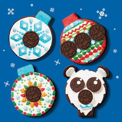 This kit includes 8 pre-baked chocolate cookies made with cookie pieces, cookies, a pre-made crème-flavoured white icing pouch, 3 icing writers ...