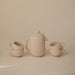 Our silicone tea play set is designed for little hands and big imaginations. This adorable set includes a teapot with removable lid and three matching tea cups, all made from 100% food-grade silicone. Soft and durable, our tea set is perfect for hours of pretend play and encourages communication and social skills. Dishwasher safe for easy clean up once tea time is over. Mushie's silicone tea set is a charming addition to play kitchens and bath time.