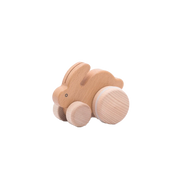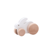 This adorable little wooden bunny moves with a hopping motion as it is pushed along the floor because the wheels are not centered. Your little one will love to push the rabbit on any surface since the wheels have a rubber grip making it sturdy and perfect for little hands. It is the perfect small gift! Made for ages 1+ years.
