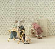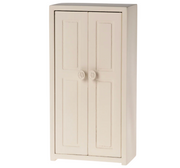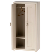 A small closet helps the mice family organize their wardrobe. The closet comes with three golden hangers.