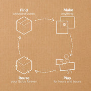 The ultimate plaything, build with upcycled cardboard to make anything from a flower to a fort, a mask to a maze. Cardboard construction has never been this simple, safe and effective.