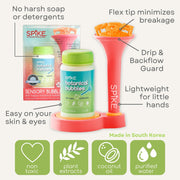 Long-lasting, mess-free bubbles are here: Say hello to SPIKE’s Sensory Bubble Play! This sensory bubble toy gives tons of bubbles without the mess or soapy gooey residue. Perfect for sensory play, learning, bubble therapy, the classroom, birthday parties, special events, and more, this uniquely designed bubble system is non-toxic, calming, and worry-free for parents. Made with plant extracts, coconut oil, and purified water, the skin-happy botanical bubble solution is easy on sensitive skin.