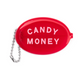 This pouch is translucent red with a sweet vintage-inspired "Candy Money" message in pink.