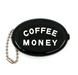 This pouch is black with a sweet vintage-inspired "Coffee Money" message in white.