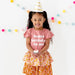 Happy Birthday To Me! Details Features & Sizing *Crewneck, pullover styling *Short sleeves - Puff Sleeve *White Print Materials & Care 5 oz./yd², 100% combed ringspun cotton Ribbed collar Self fabric flutter detail at armhole Curved hem Coverstitched side seam construction CPSIA compliant tracking label in side seam EasyTear™label