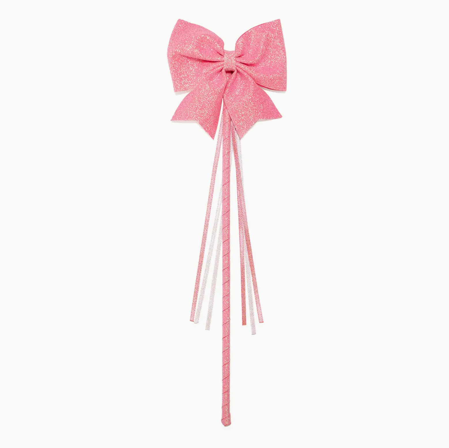 - Pink and gold ribbons dangle for a magical effect