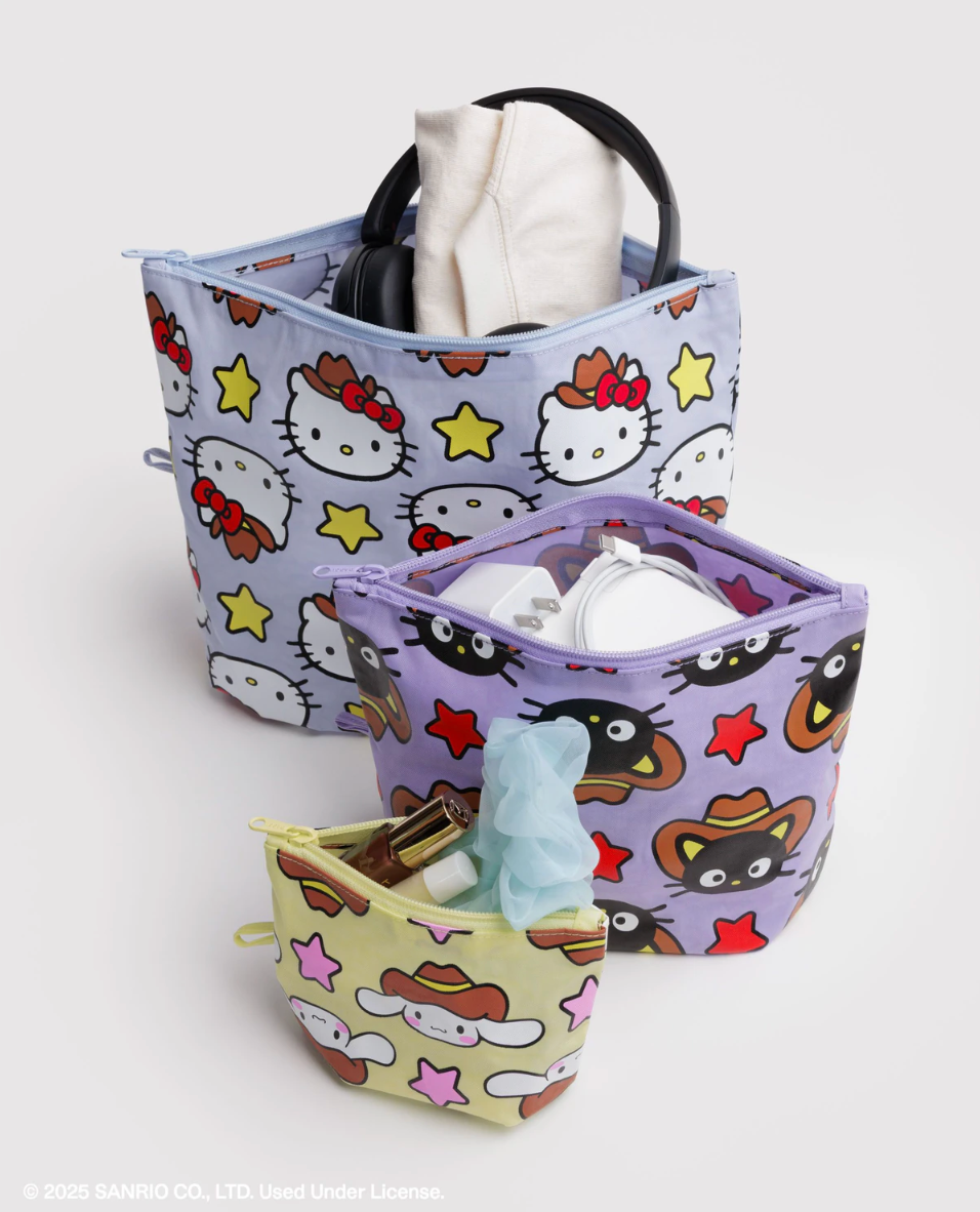 Our Go Pouch Set makes it easy to keep your bag neatly packed and organized. Whatever you're toting—coins, cords, or an extra pair of shoes—this set of three all purpose pouches keeps it together. They expand to hold your essentials and lay flat when not in use.