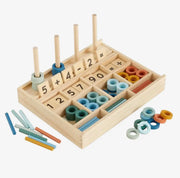 • All-in-one math station: 43 number & symbol tiles, 44 counting sticks, 64 counting rings, equation tray & pegs for hands-on learning.