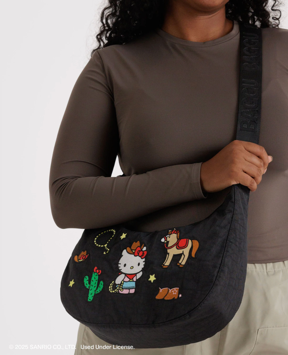 Medium Nylon Crescent Bag - Embroidered Hello Kitty Western